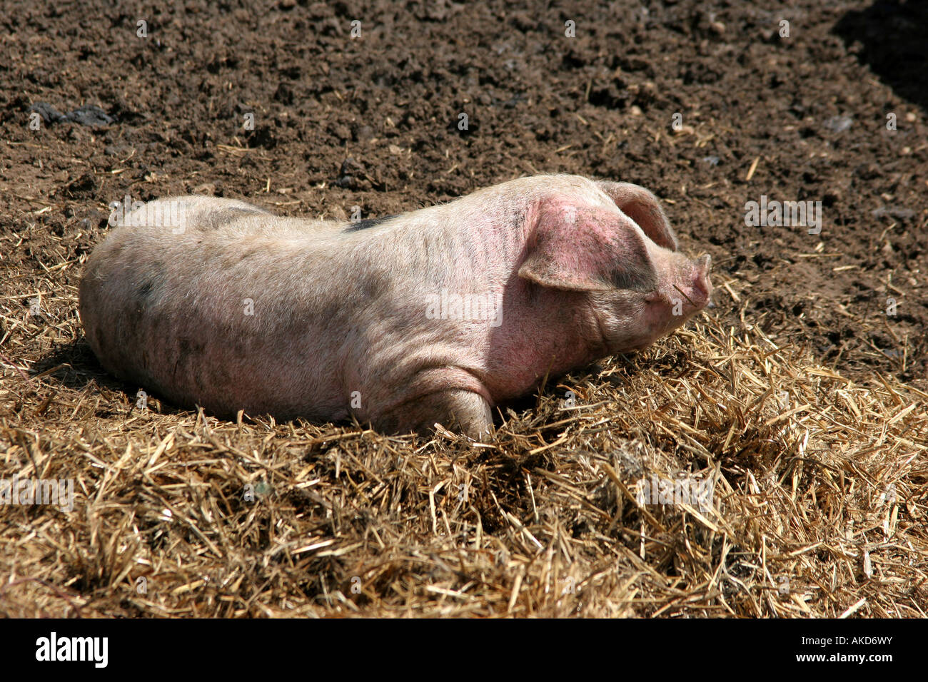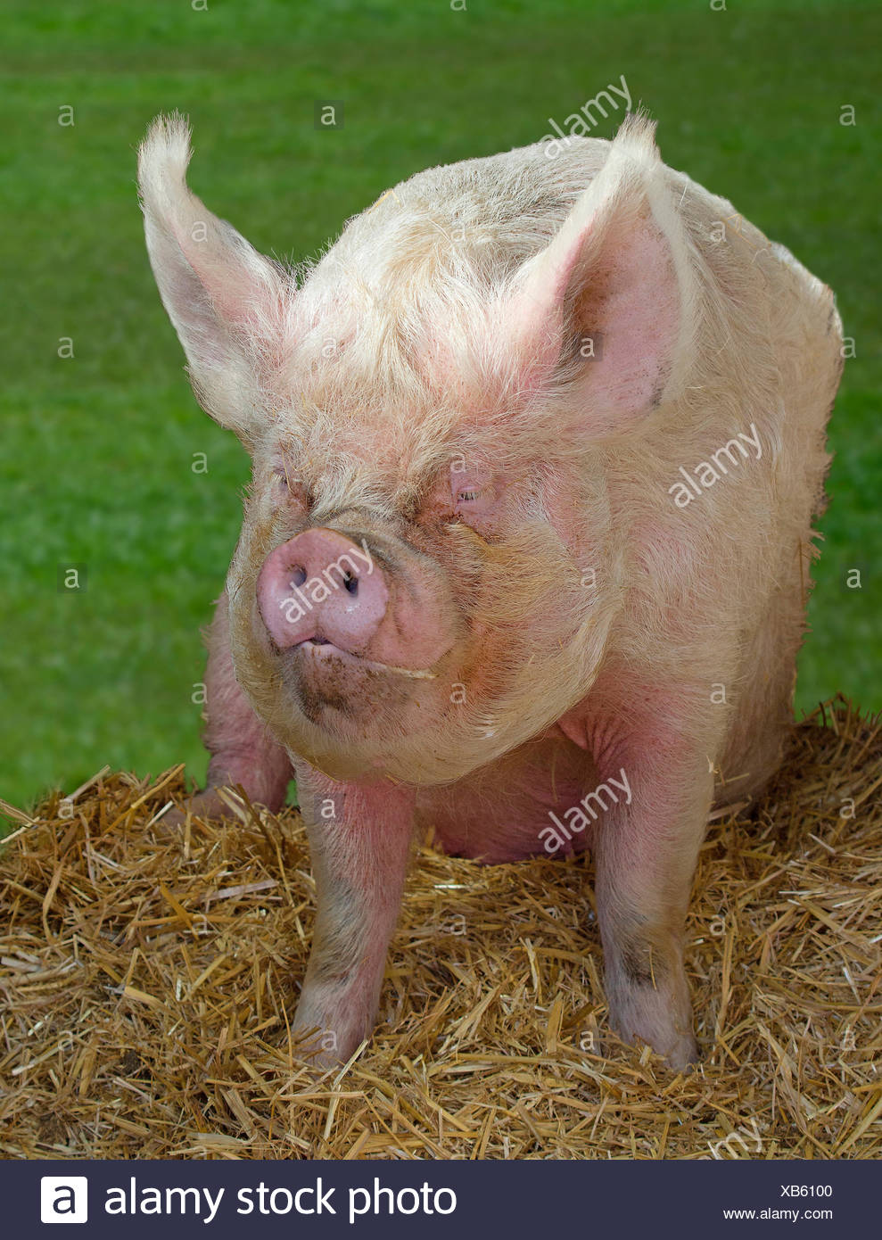 Suini Domestici Inglese Medio Bianco Maiale Il Cinghiale Seduto Sulla Paglia Inghilterra Foto Stock Alamy
