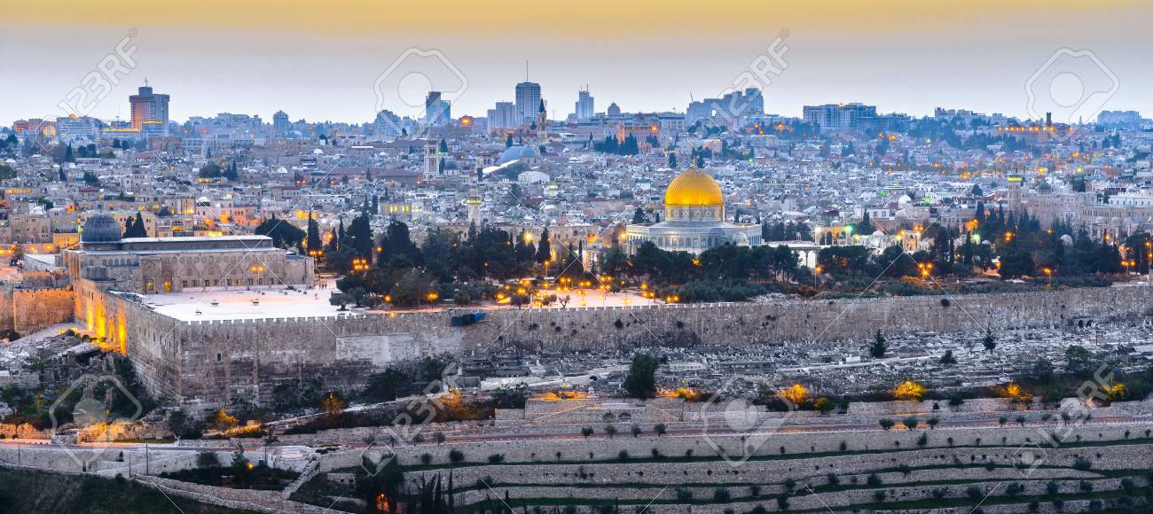 Immagini Stock Vista Panoramica Della Citta Vecchia Di Gerusalemme E Del Monte Del Tempio Cupola Della Roccia E Moschea Di Al Aqsa Dal Monte Degli Ulivi A Gerusalemme Image