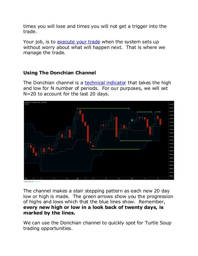 The Turtle Trading Channel Indicator is a trendfollowing forex trading indicator which has been developed to generate simple trendbased trade signals Its simplicity of use offers a great advantage to newbie traders who struggle to enter the trades within the trend directions. That’s stupid trading, because you’re trading your wallet, and you’re not trading the market My wallet will not help me trade the market profitably I know that!. The Turtle soup strategy tries to take the opposite side of these false breakouts The strategy is not a fullfledged trading strategy with entries and exits and a definite set of money management rules, which makes it perfect for traders to adapt the setup to their own trading style and risk appetite and embed in their own workflow.