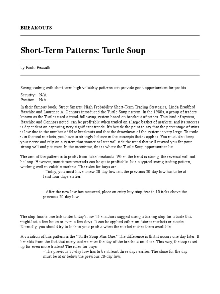 Turtle SoupChapter 16The Master Guide to Swing Trading & Trend Following7 wwwalpeshpatelcom. The only Turtle Soup and Turtle Soup Plus One – Linda Rasche and Lawrence Connor. Turtle soup Strategies, Trading / 0709 Trading Strategies That Were a Revolution Three Strategies of Linda Raschke 80 anti forex linda raschke trading trading strategy turtle soup Popular categories Analysis 1 ;.