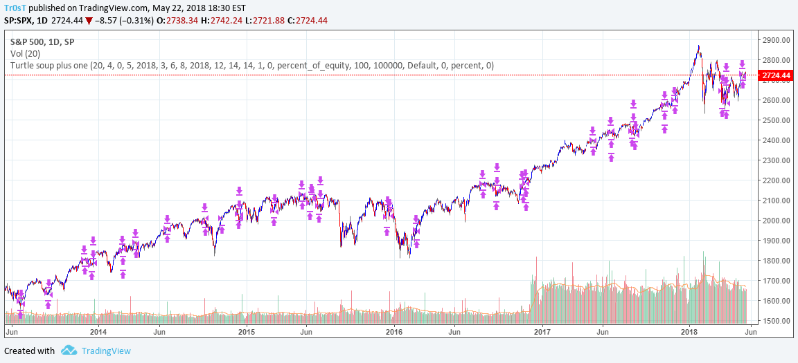 This strategy is based on the Turtle Soup strategy in the book “Street Smarts” SIMULATED RESULTS DO NOT REPRESENT ACTUAL TRADING ALSO, SINCE THE TRADES HAVE NOT ACTUALLY BEEN EXECUTED, THE RESULTS MAY HAVE UNDER OR OVERCOMPENSATED FOR THE IMPACT, IF ANY, OF CERTAIN MARKET FACTORS, SUCH AS LACK OF LIQUIDITY. Financial News 11 ;. J’aimerai créer un indicateur qui permette de détecter le fameux signal ou système de trading “Turtle soup” N’ayant aucune compétence en programmation, je m’en remet à vous Le turtle soup baissier repérer un nouveau haut de périodes La clôture doit s’effectuer sous le précédent haut.
