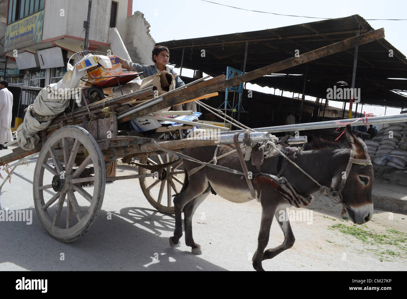 Un Bambino Operaio Porta Rottami Di Guadagnare La Sua Fonte Di Sostentamento Per Sostenere La Sua Famiglia Per Il Suo Asino Carrello Passa Attraverso Una Strada A Quetta Martedi Settembre 18 12 Foto