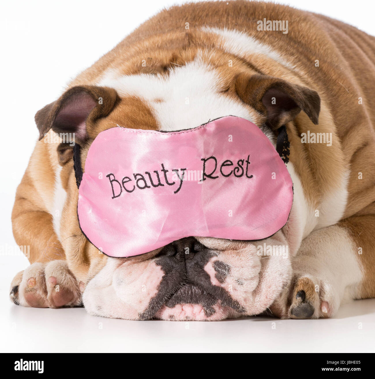 Bulldog Inglese Che Indossa La Bellezza Di Riposo Maschera Del Sonno Foto Stock Alamy