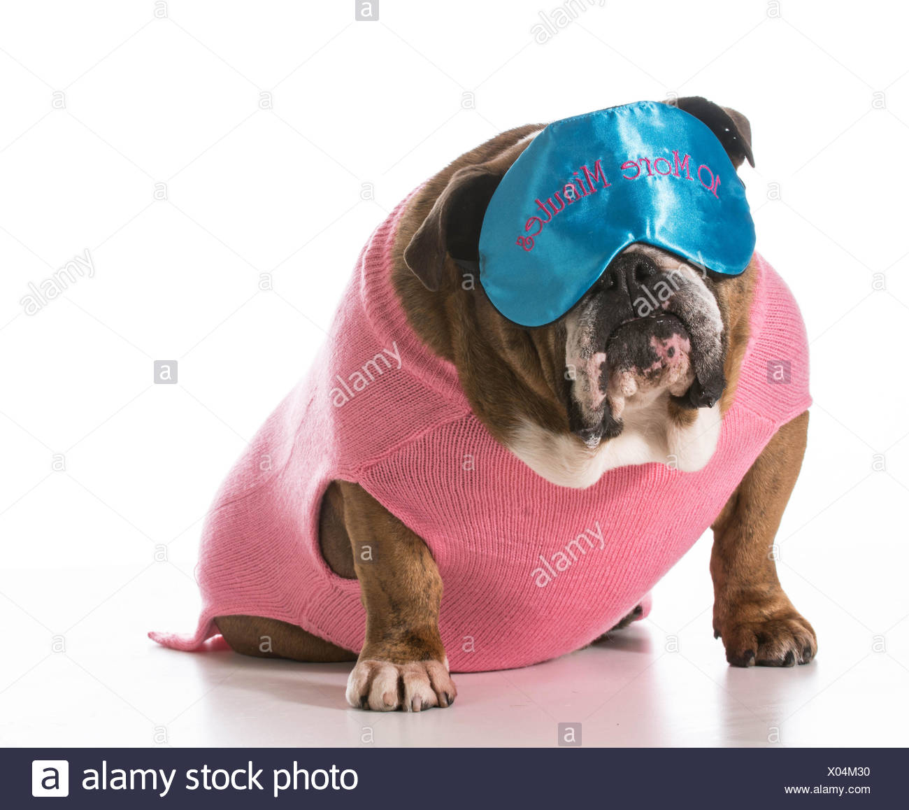 Cane Che Indossa La Maschera Del Sonno Seduto Su Sfondo Bianco Bulldog Inglese Foto Stock Alamy