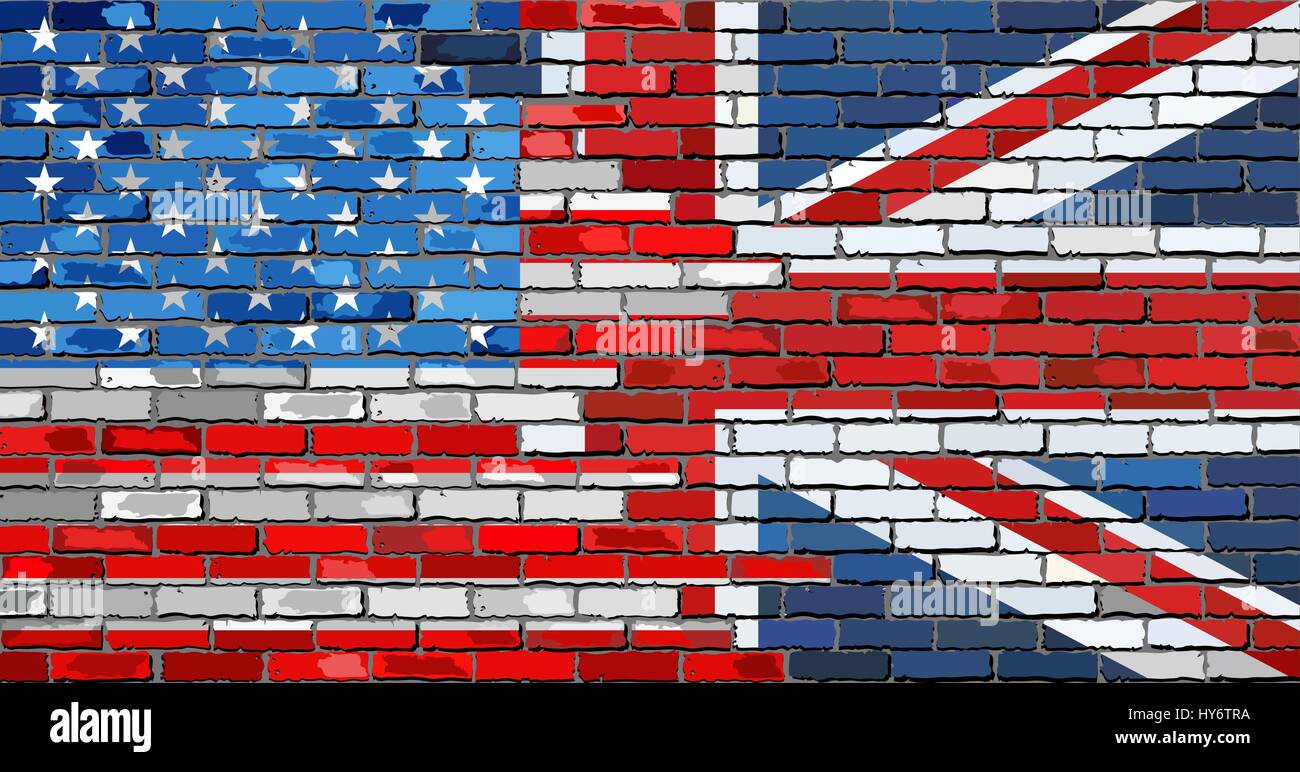 Muro Di Mattoni Usa E Uk Flags Illustrazione Misti Bandiere Degli Stati Uniti E Il Regno Unito Inglese E Bandiera Americana Immagine E Vettoriale Alamy