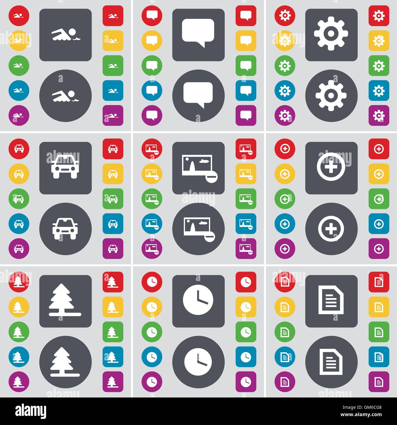 Swimmer Chat Bubble Gear Car Picture Plus Firtree Clock Icon Stock Vector Image Art Alamy