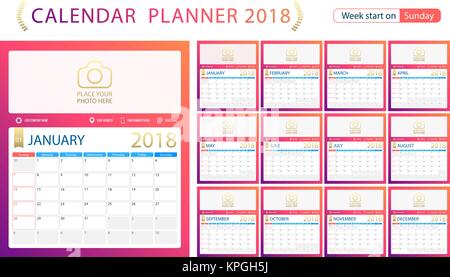Calendario Inglese Planner Per L Anno 18 Inizio Della Settimana Di Domenica Set Di Dodici Mesi Corporate Design Modello Pianificatore Di Formato Calendario Stampabile Modelli Immagine E Vettoriale Alamy