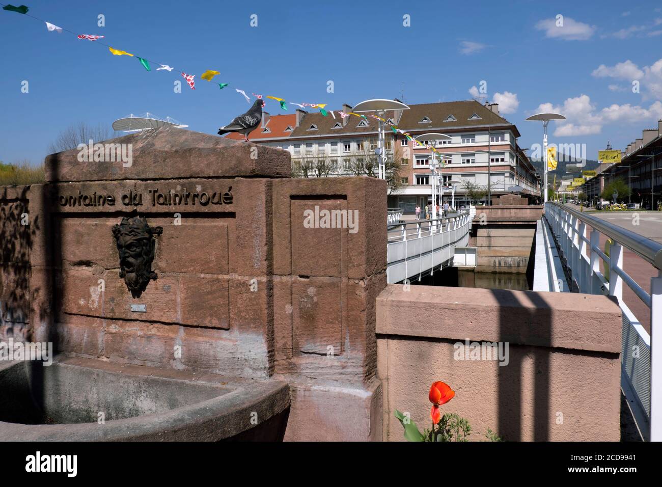 Francia Vosgos Saint Die Des Vosges Rio Meurthe Puente De La Republica Fuente De Taintroue Rue Thiers Fotografia De Stock Alamy