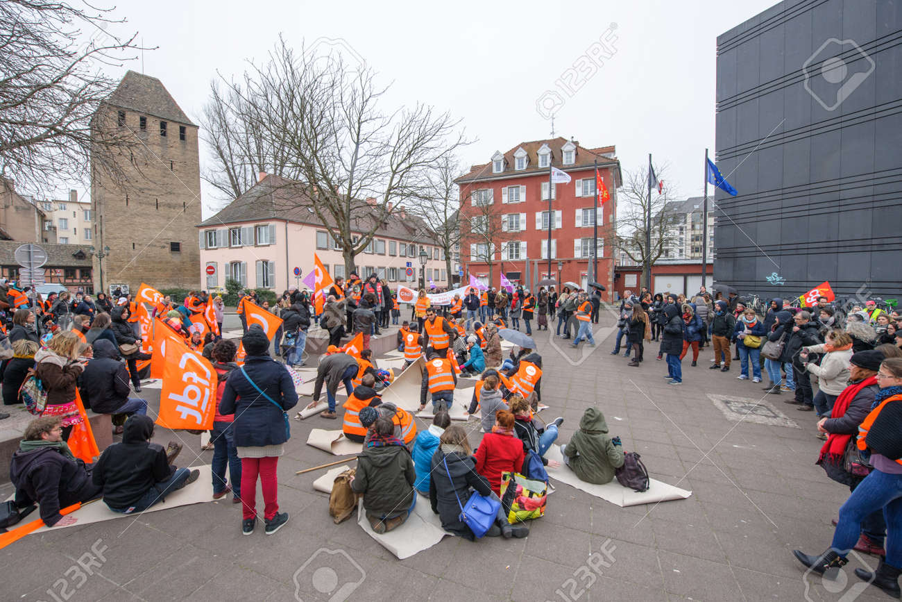 Estrasburgo Francia Mar 15 De 16 Die En Senal De Protesta Mientras Cientos Protestas Contra Bas Rhin Alsacia Recortes En El Presupuesto Departamental Para El Ano 16 Solicitando No Hay Cortes Y Aumento