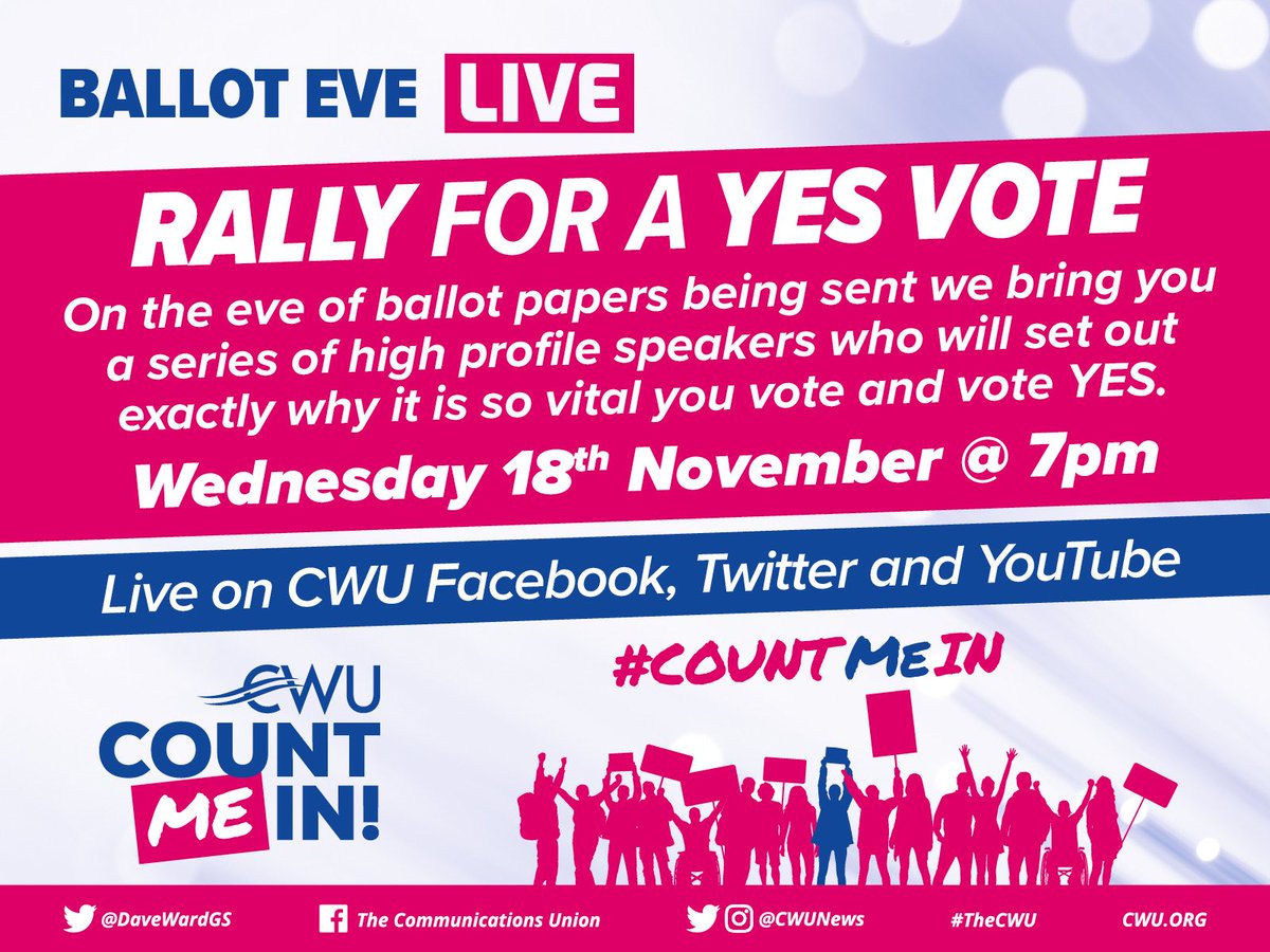 The Cwu Tonight At 7pm We Are Holding A Rally For A Yes Vote Ballot Papers Land With Our Bt Group Members Tomorrow Join Davewardgs Cwu Andykerr Karenrosecwu Nowak Paul Owenjones84 Peterstefanovi2