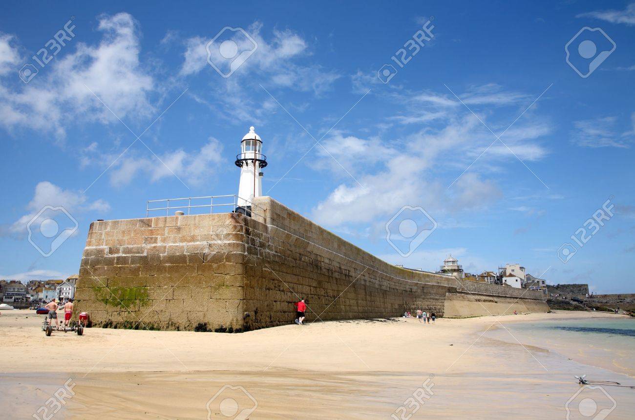 St Ives England June 18 Small Lighthouse At The Entrance To The Port In Saint Ives Cornwall Uk Stock Photo Alamy