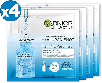 Garnier Skinactive Maschera In Tessuto Fresh Mix Arricchita Con Acido Ialuronico Pelle Levigata E Rimpolpata Confezione Da 4 Pezzi Amazon It Bellezza