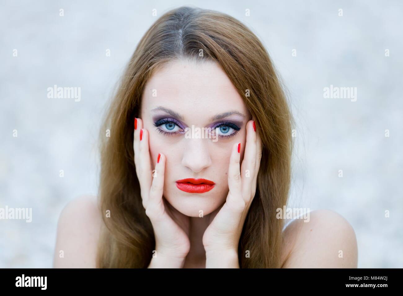 Headshot Beautiful Model Red Lips Immagini E Fotos Stock Alamy