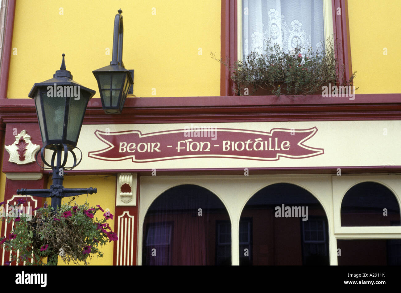 Beoir Fion Biotaille Beer Wine Spirits Sign Outside A Pub In County Stock Photo Alamy