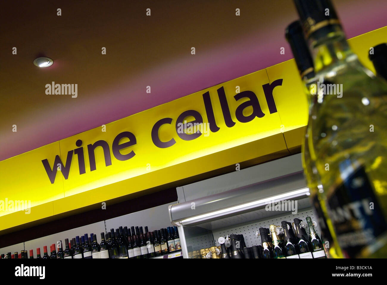 Wine Cellar Sign In A Supermarket Wine And Spirits Section Stock Photo Alamy