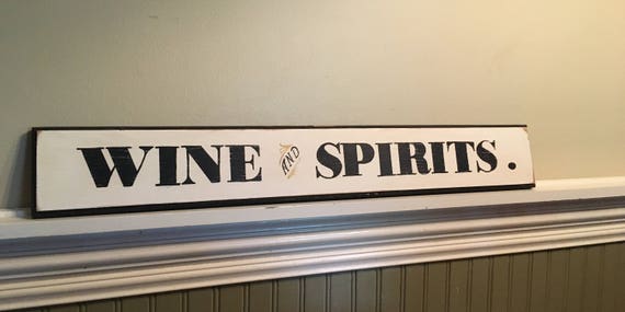 Wine And Spirits Sign Painted Sign Vintage Style Sign Black Etsy