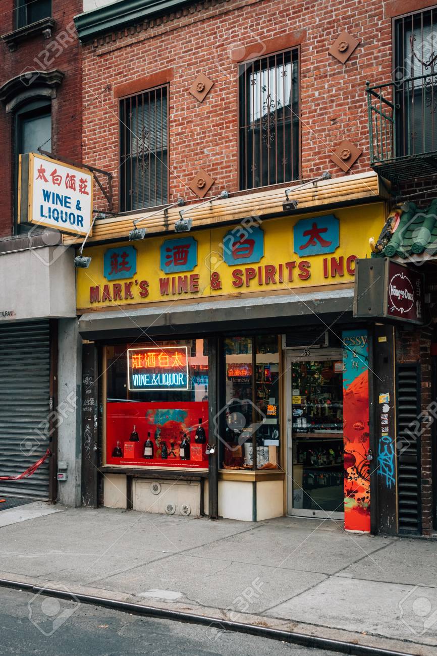 Mark S Wine Spirits Sign In Chinatown Manhattan New York Stock Photo Picture And Royalty Free Image Image
