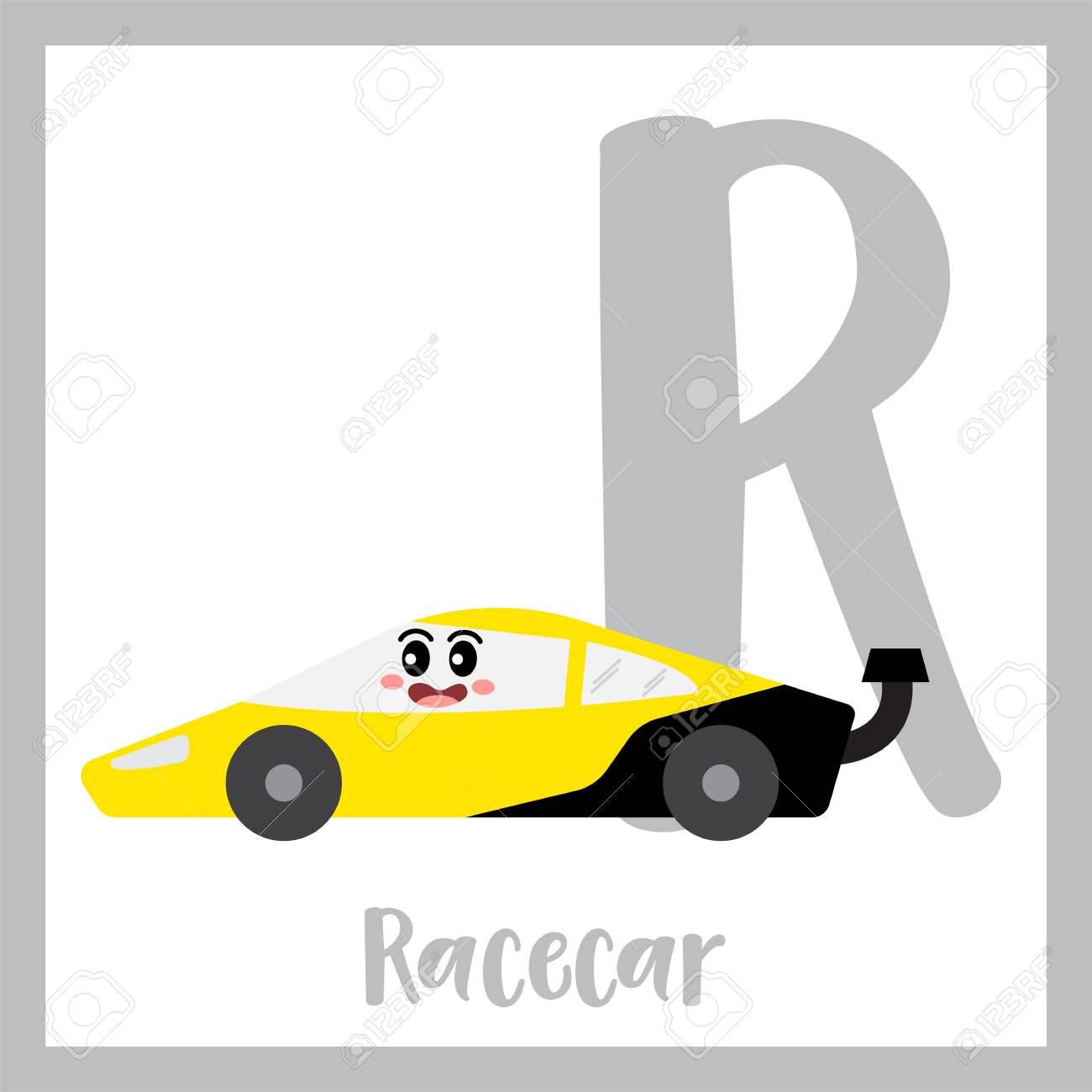 Vettoriale Letter R Cute Children Colorful Transportations Abc Alphabet Flashcard Of Racecar For Kids Learning English Vocabulary Vector Illustration Image