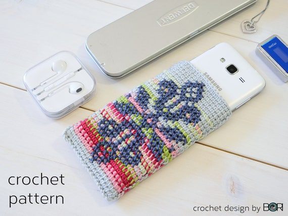 Phone Case Crochet Pattern With Cross Stitch Motif Easy Diy Etsy