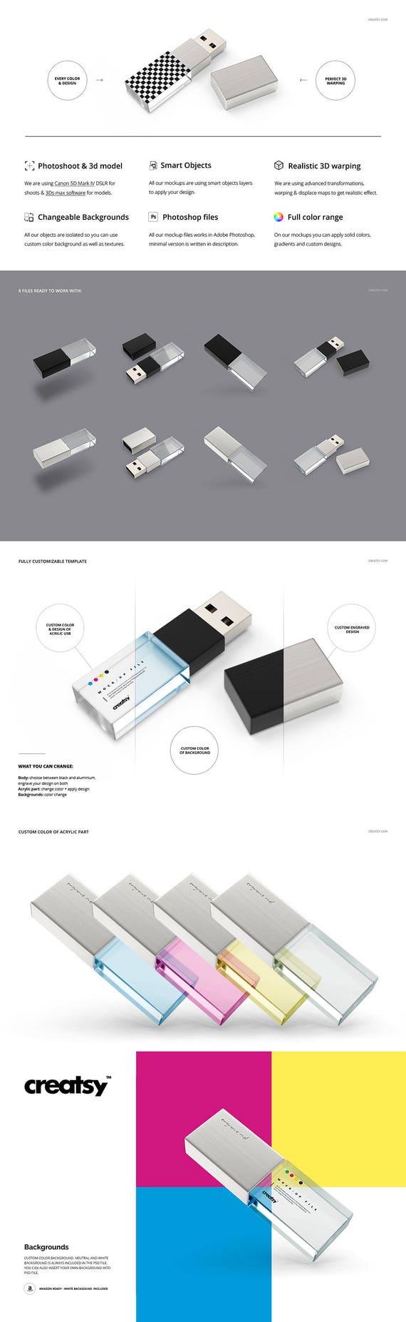 Acrylic Usb Drive Mockup Set Pendrive Mockup Usb Template Etsy