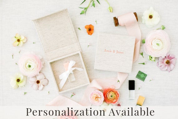 Oatmeal Linen Box Usb Box Off White Ribbons Flash Drive Etsy