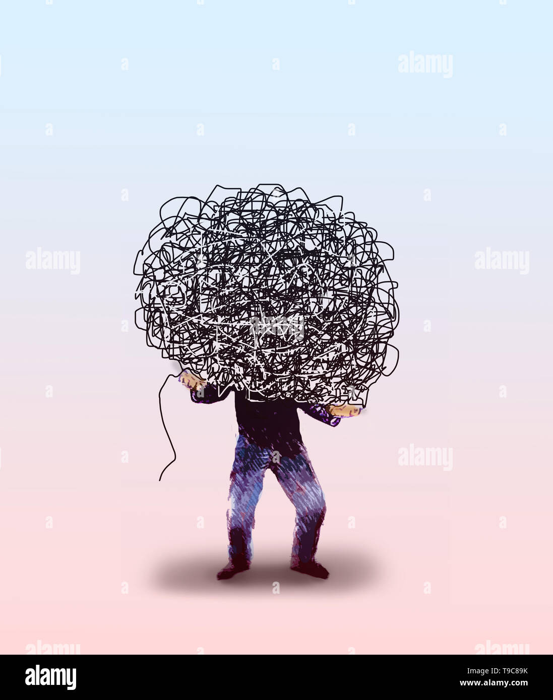 Uomo Con L Uomo Nella Testa Confusione Concetto Illustrazione Foto Stock Alamy