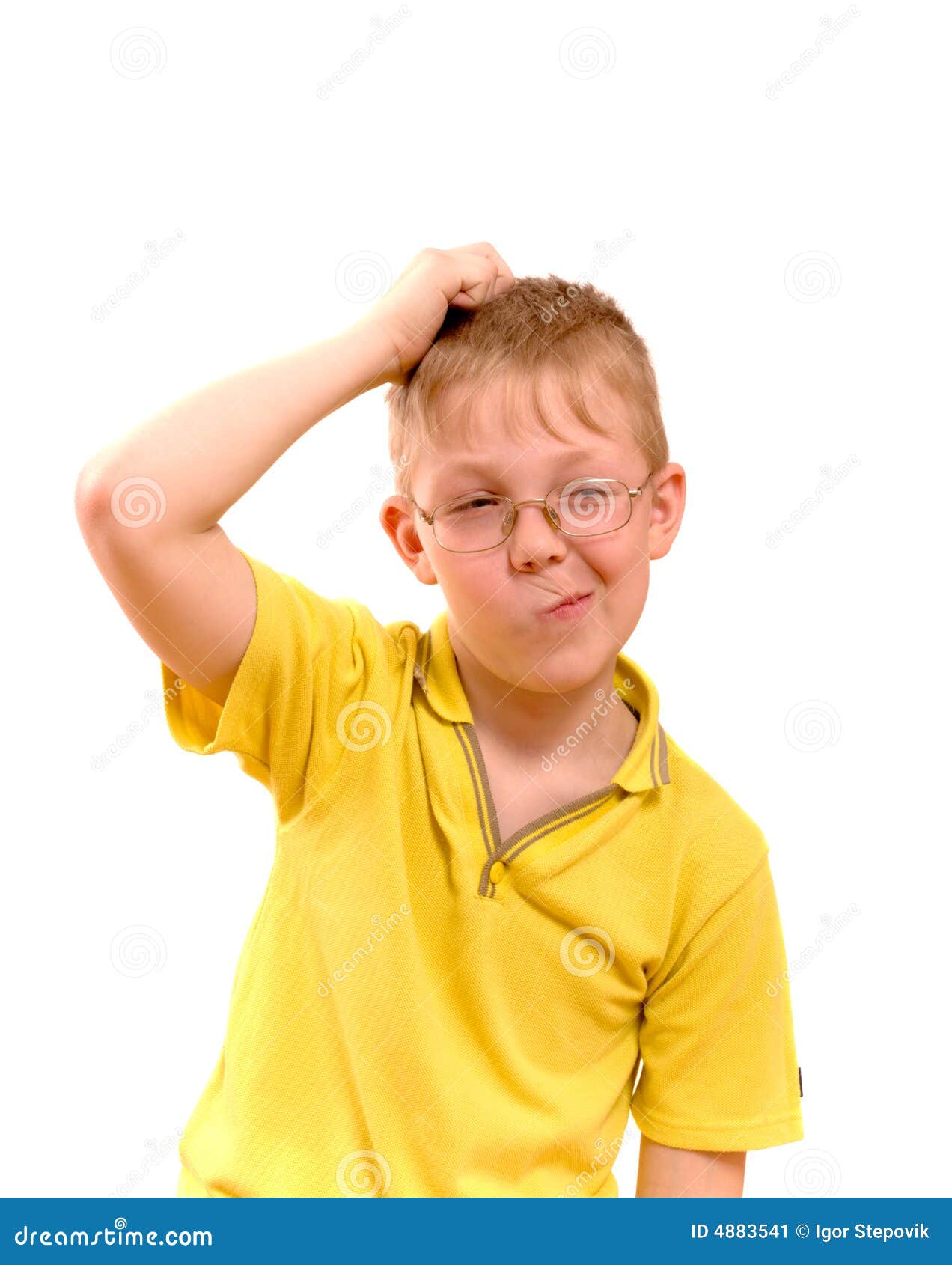 Il Ragazzo Graffia La Sua Testa Nel Puzzlement O Nella Confusione Immagine Stock Immagine Di Mani Comportamento