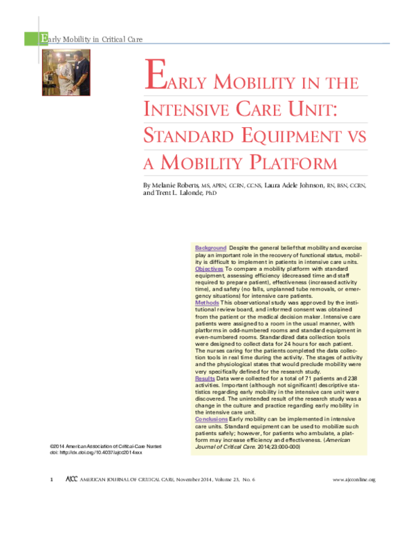 Pdf Early Mobility In The Intensive Care Unit Standard Equipment Vs A Mobility Platform Trent Lalonde Academia Edu