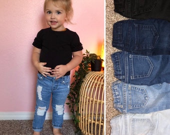 Distressed Jeans Black Distressed Skinny Jeans Toddler Girl Distressed Denim Girls jeans baby girl distressed pants Ripped Jeans a JadeyLaneBoutique From shop JadeyLaneBoutique 5 out of 5 stars (439) 439 reviews $ 20 Favorite Add to. Joe's The Jane Distressed Cuffed Hem Jeans (Big Girl) $3900 – $4500 (10) Free Delivery LimitedTime Sale Vigoss Frankie High Waist Distressed Ankle Straight Leg Jeans Was $6900 Now $2328 66% off Free Delivery New!. Well you're in luck, because here they come There are 1524 distressed jeans for girls for sale on Etsy, and they cost $3005 on average The most common distressed jeans for girls material is cotton The most popular color?.