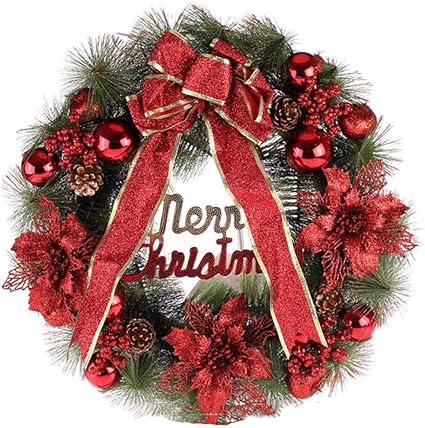 Ghirlanda Nlian Natale Decorata Con Fiocco Rosso Alfabeto Inglese Bacche Rosse 3 Fiori Ornamenti Sferici For Una Fantastica Decorazione Natalizia For Qualsiasi Casa Color Red Amazon It Casa E Cucina