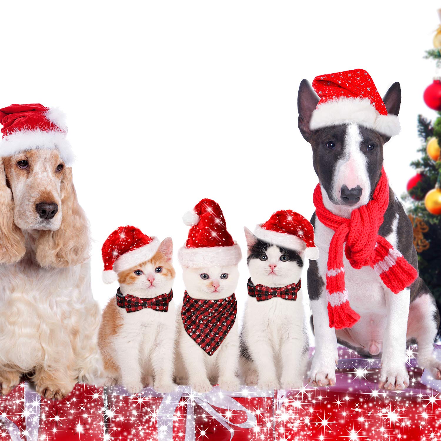 S 3 Pezzi Natale Pet Set Plaid Fiocco Di Neve Bandana Rosso Plaid Fiocco Collare Di Natale Cappelli Per Cani Gatti Animali Domestici Decorazioni Natalizie Cani Prodotti Per Animali Domestici