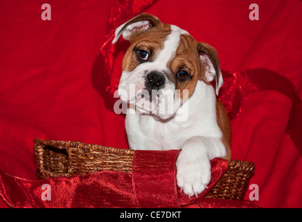 Cane Presente Bulldog Inglese Con Fiocco Rosso Sulla Testa Foto Stock Alamy