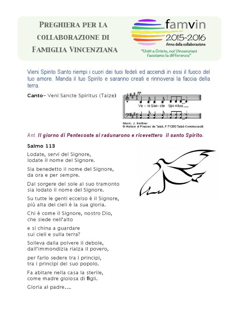 Vieni, Santo Spirito Testo con audio Vieni, Santo Spirito, manda a noi dal cielo Un raggio della tua luce Vieni, padre dei poveri, vieni, datore dei doni vieni, luce dei cuori Consolatore perfetto;. Santo Spirito wwwecclesiaanauneit / Canonica e segreteria Cles / Segreteria Tuenno DOMENICA DI PENTECOSTE Anno A 31 maggio Vieni, Santo Spirito, riempi i cuori dei tuoi fedeli, e accendi in essi il fuoco del tuo amore LITURGIA DELLA PAROLA Prima Lettura Atti degli Apostoli 2,111. Vieni Santo Spirito Vieni Santo Spirito, vieni Santo spirito, riempi i cuori dei tuoi fedeli, accendi il fuoco del tuo amor Ovunque sei presente, Spirito di Dio, in tutto ciò che vive infondi al tua forza, tu sei Parola vera, fonte di speranza, e guida al nostro cuore Tu vivi in ogni uomo, Spirito di Dio,.