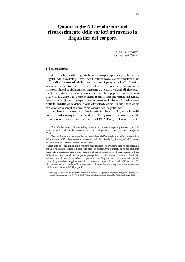 Pdf Quanti Inglesi L Evoluzione Del Riconoscimento Delle Varieta Attraverso La Linguistica Dei Corpora Francesca Bianchi Academia Edu