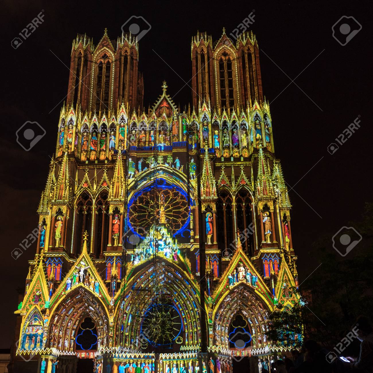 Espectaculo De Luz En La Catedral De Reims En Reims Francia El 12 De Septiembre 15 Fotos Retratos Imagenes Y Fotografia De Archivo Libres De Derecho Image
