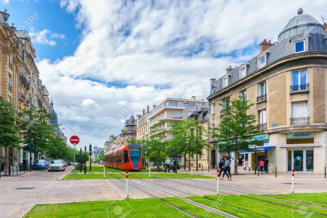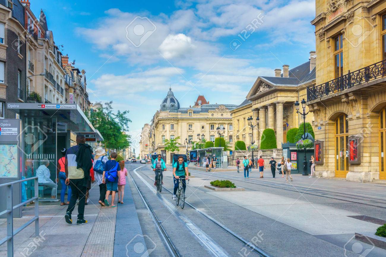 Reims France June 17 17 Tram On The Streets And Architecture Stock Photo Picture And Royalty Free Image Image