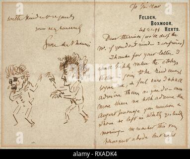 Lettera Con Disegno Di Whistler Minaccioso Du Maurier 14 George Du Maurier Inglese 14 16 Francia Penna E Inchiostro Bruno Su Carta Velina Blu Della Carta Con Stampa In Rilievo 162 192