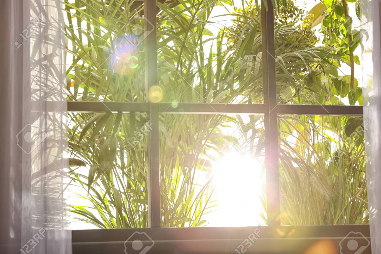 Beautiful View Through Window On Garden In Morning Stock Photo Picture And Royalty Free Image Image