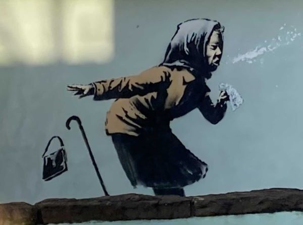 Banksy Murale Sulla Pandemia Da Covid 19 Anziana Fa choo E Perde La Dentiera
