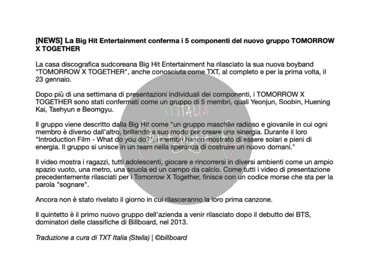 Txt𖧵italia Articolo Billboard La Big Hit Entertainment Conferma I 5 Componenti Del Nuovo Gruppo Tomorrow X Together Traduzione A Cura Di Txt Italia Stella Txt Tomorrow X Together Welcometxt T Co Lhoe0vu7pk