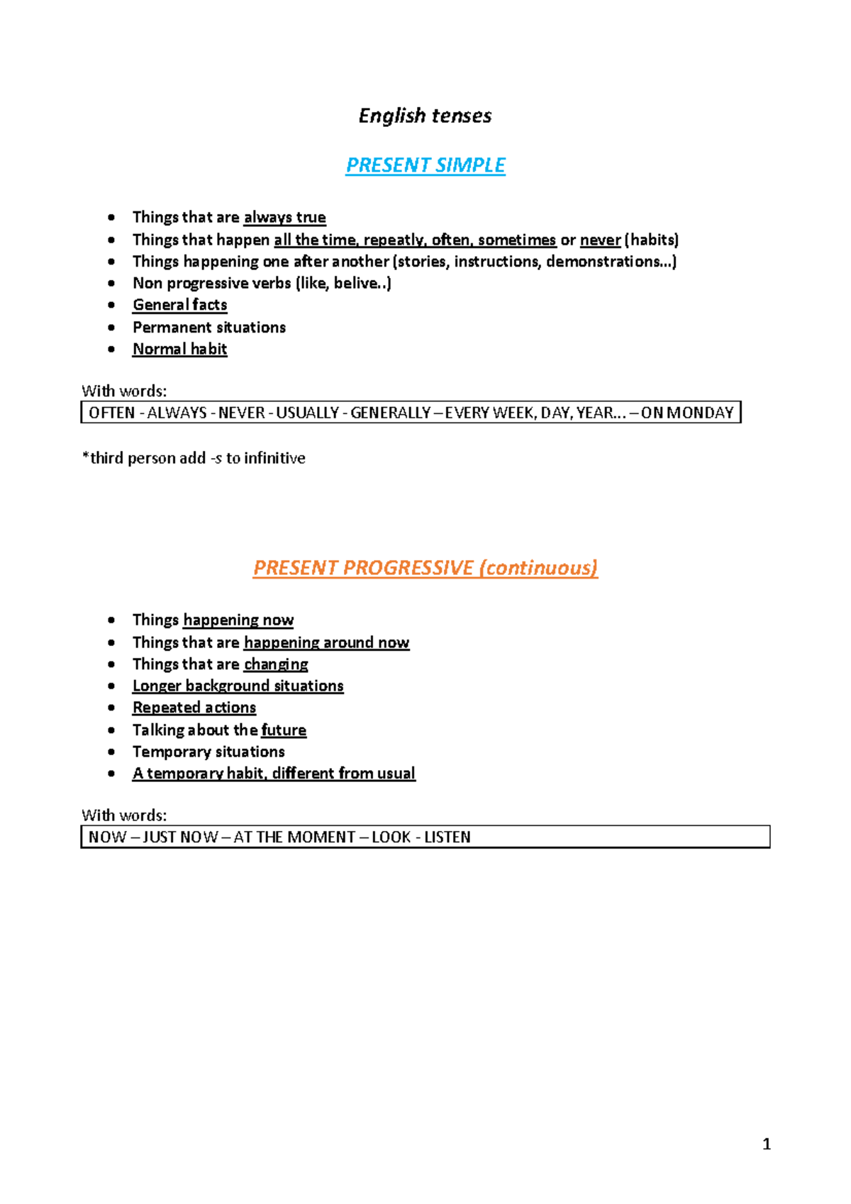 English Tenses Tempi Verbali Inglese English Tenses Present Simple Things That Studocu