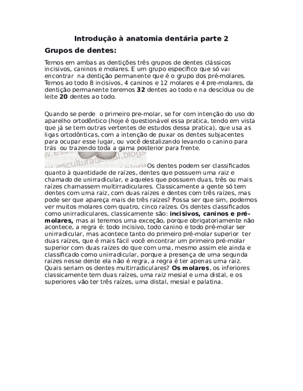 Doc Introducao A Anatomia Dentaria Parte Julianna Mendes Academia Edu
