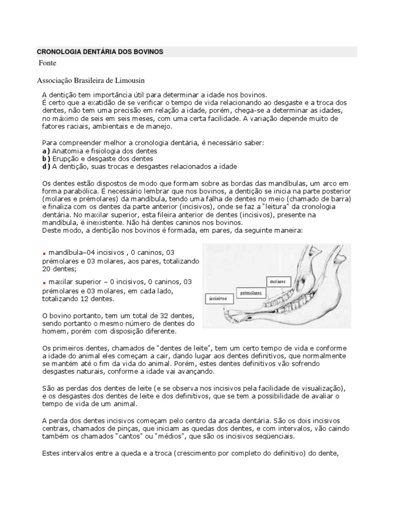 Cronologia Dentaria Dos Bovinos Dente Natureza