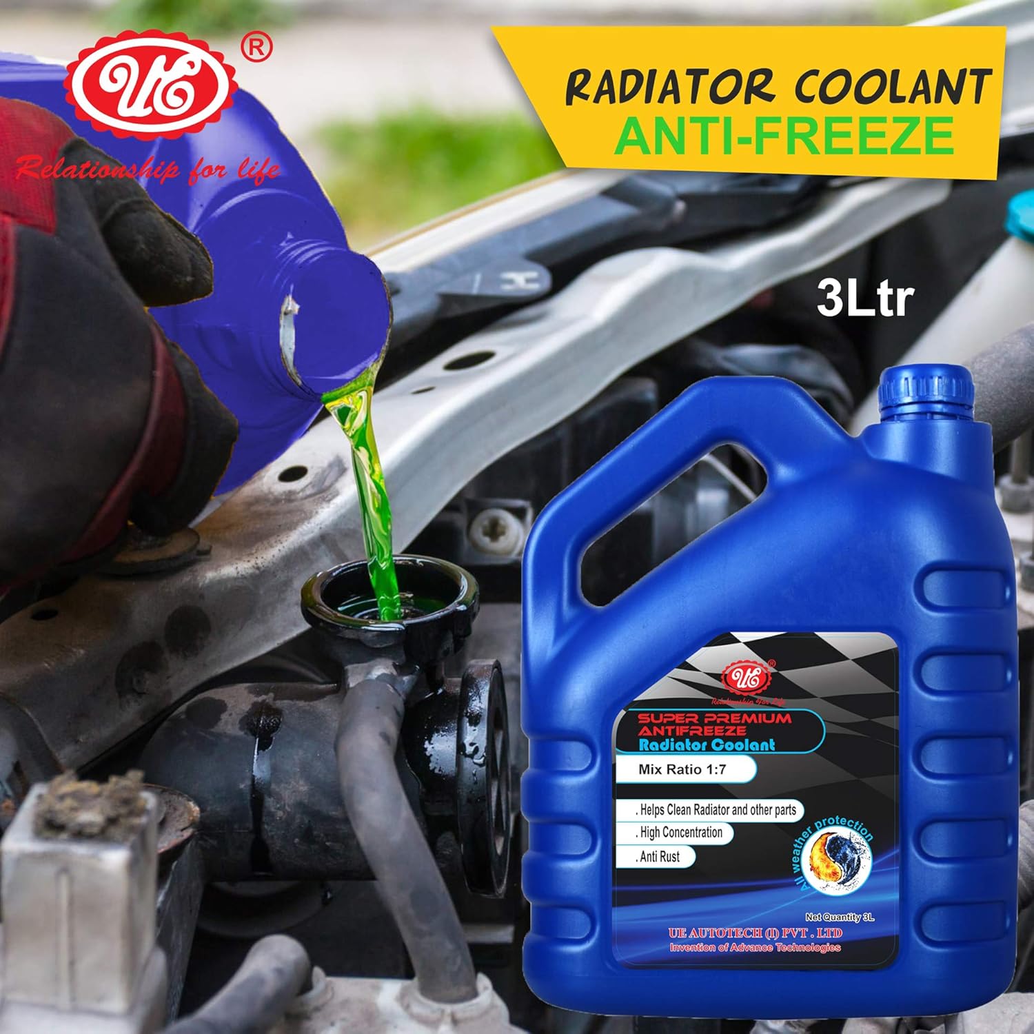 Ue Premium Radiator Coolant Antifreeze Green 3 Liter Car Care Car Accessories Automotive Products Amazon In Car Motorbike