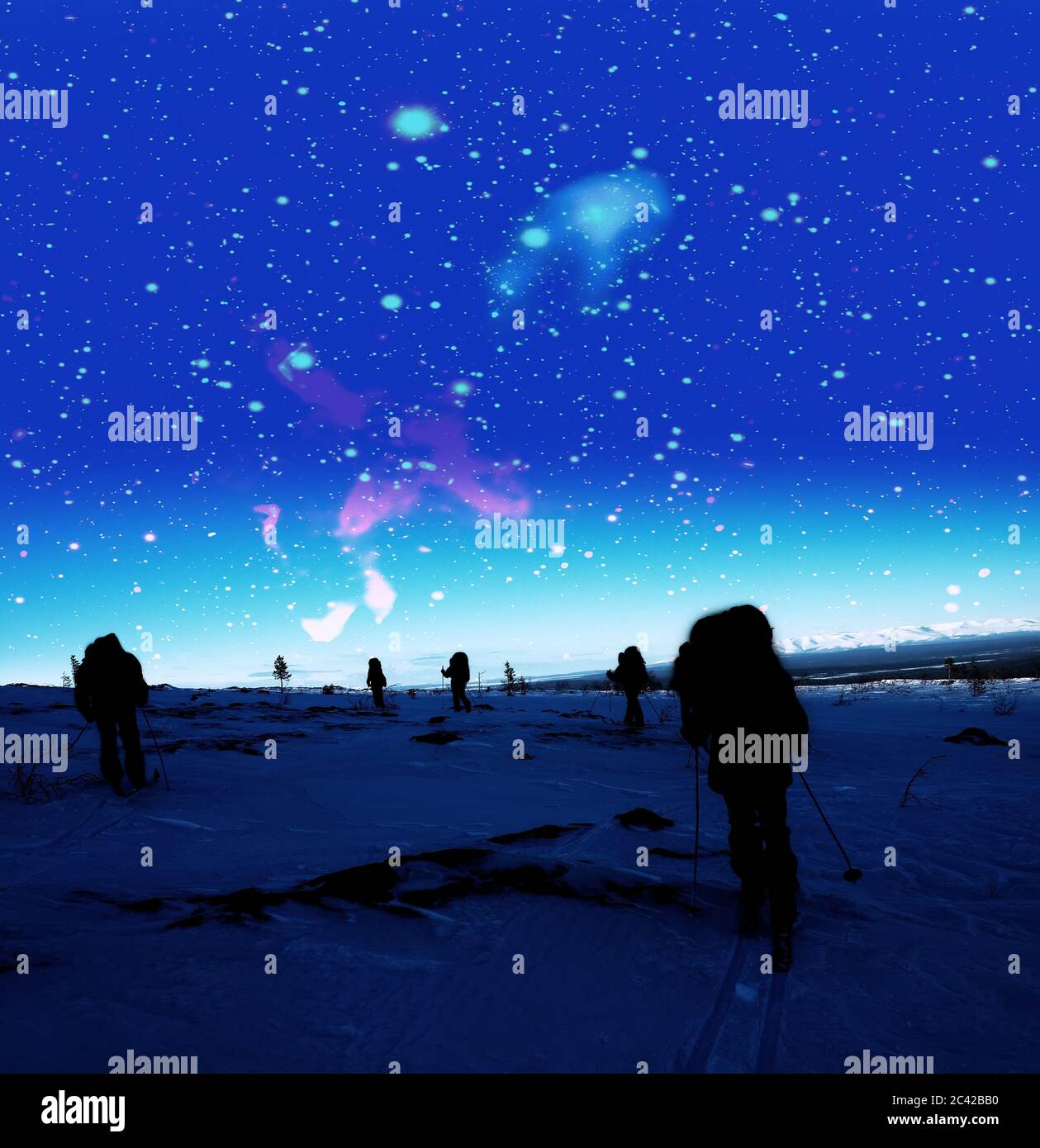 Group Of Ski Tourists With Backpacks Under Night Space Sky With Stars Silhouettes Of People Are Unrecognizable Anonymous Elements Of This Image Furn Stock Photo Alamy