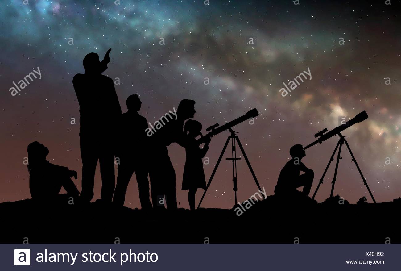 Artwork Of Star Party A Group Of People Meeting With Telescopes To Share Their Admiration Of The Night Sky And Astronomy The People Are Seen In Sil Stock Photo Alamy