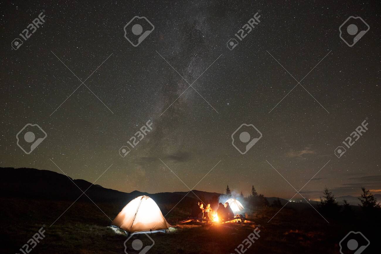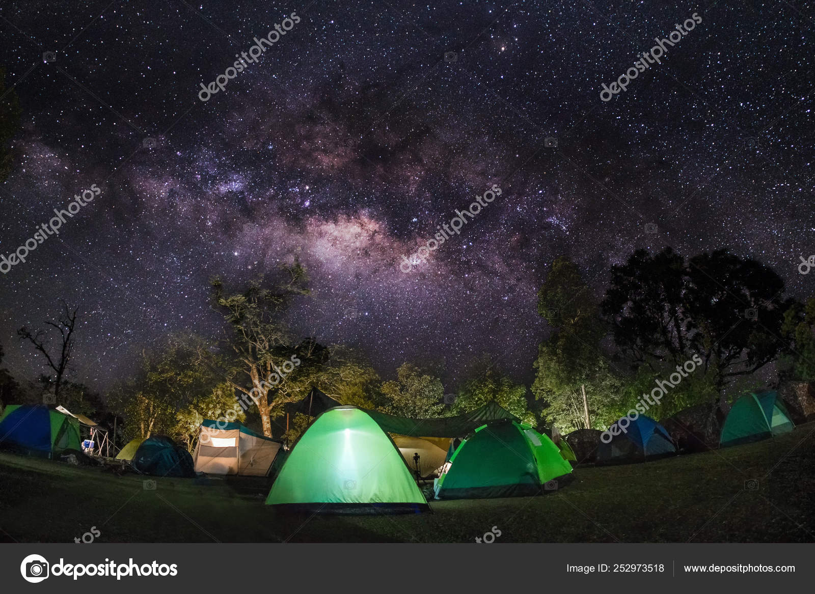 Camping Group Under The Amazing Star On Sky Travel Outdoor Acti Stock Photo C Happystock