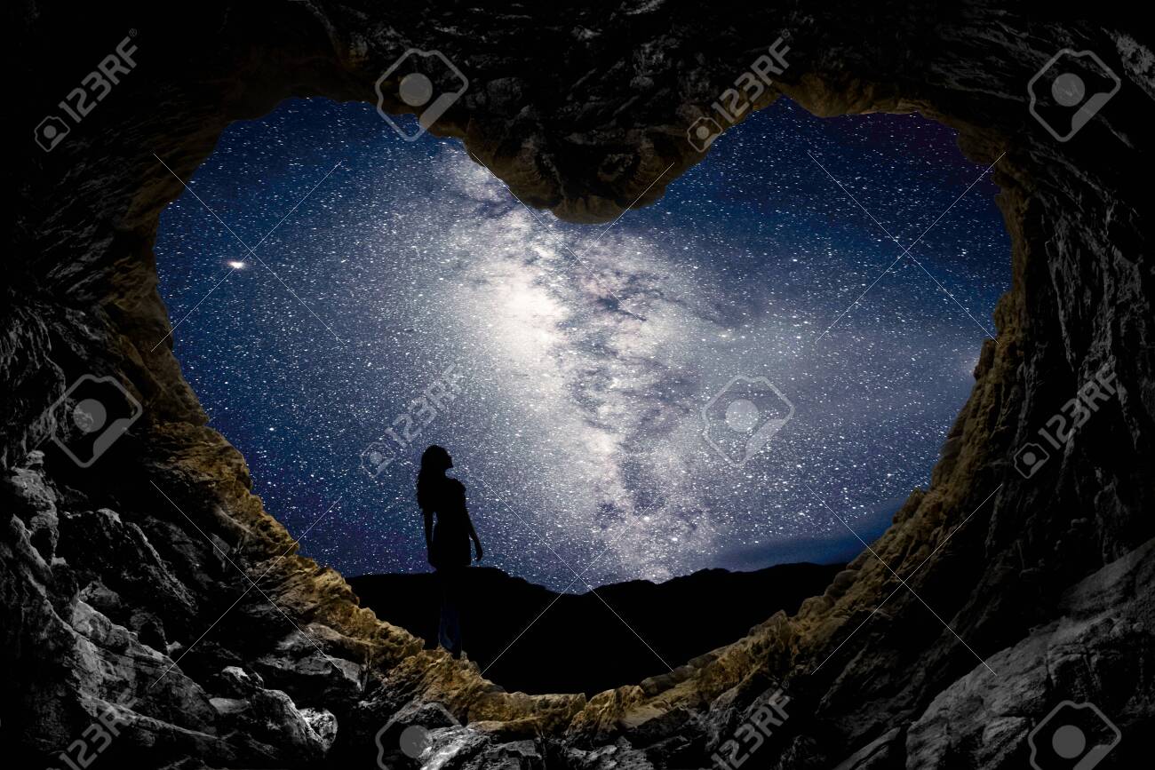 A Lady Watching The Milky Way Star Group In The Sky At Dusk And Stock Photo Picture And Royalty Free Image Image