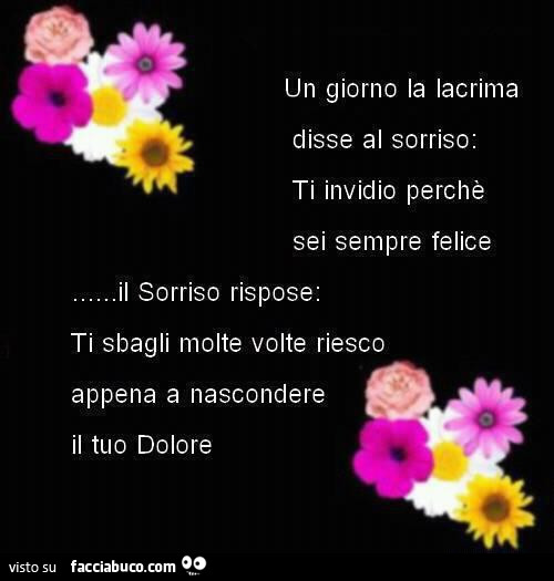 Un Giorno La Lacrima Disse Al Sorriso Ti Invidio Perche Sei Sempre Felice Il Sorriso Facciabuco Com