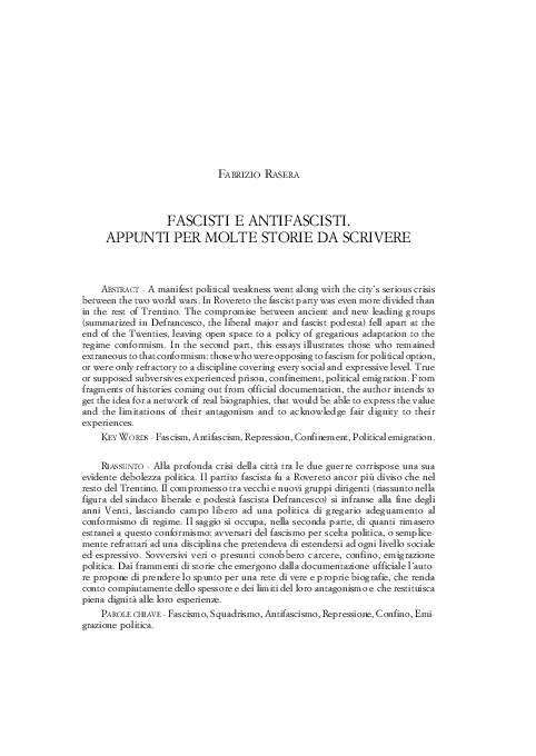 Pdf Fascisti E Antifascisti Appunti Per Molte Storie Da Scrivere Fabrizio Rasera Academia Edu
